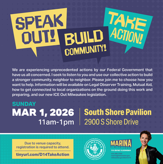 Today, members of the Milwaukee Common Council announced ICE Out Milwaukee, a legislative package designed to protect public safety, ensure transparency and accountability, uphold constitutional rights, and strengthen Milwaukee’s long-term population and economic growth. The package is presented at a time where City residents fear a potential major operation by the U.S. Immigration and Customs Enforcement Agency (ICE) in Milwaukee.