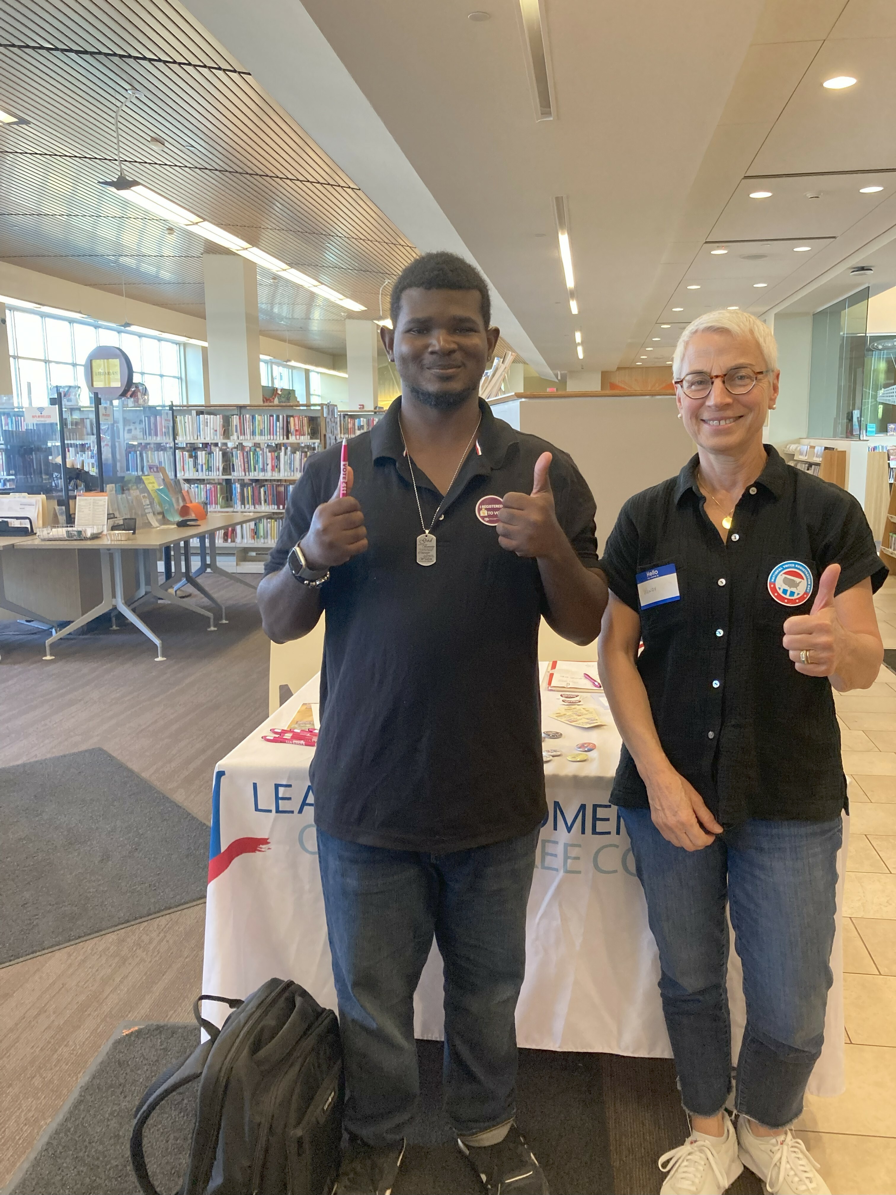 The LWVMC Library Outreach team celebrated the National Voter Registration Day (NVRD) on September 16th with several voter registration events. We partnered with the Milwaukee Public Library to participate in their voting carnivals with special drinks, games and lots of stickers at the Martin Luther King Jr. Branch, the Mitchell Street Branch and the Good Hope Branch. We also held events at the Washington Park Branch, the Whitefish Bay Library, and the Center Street Branch. We rounded out the week at the Villard Square Branch Library on Thursday, and finished strong on Friday with a table at the Central Library before Dr. Klingenberg's talk about building a social infrastructure.
