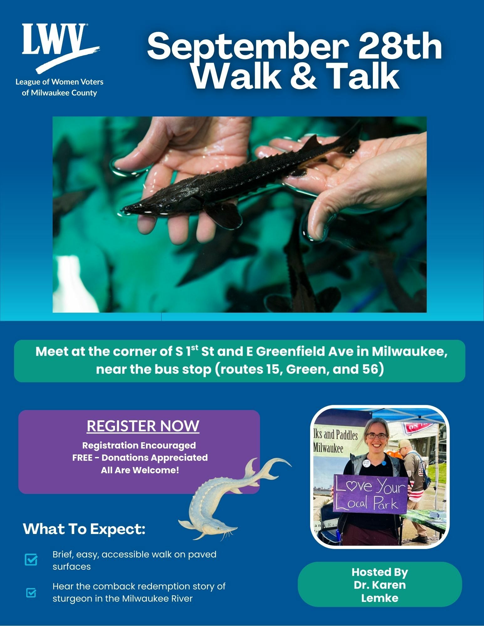 Are you available to help setup, welcome guests or cleanup? Please volunteer here: Unite & Rise Gathering | REGISTER HERE for an easy, accessible walk on paved surfaces to hear the comeback redemption story of sturgeon in the Milwaukee River.