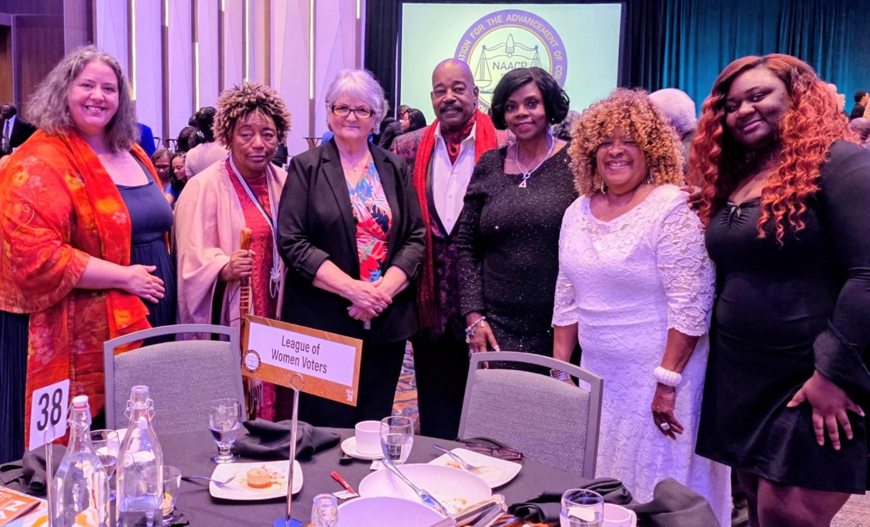 For the third year in a row, LWVMC sponsored a table at the Milwaukee Branch of the NAACP’S Freedom Fund Dinner on Friday, October 17, 2025. The table, promoted by the DEI committee, was endorsed by the Board of Directors. It literally reflected our diversity, equity and inclusion commitment. Our table included MATC student Rickiyah Wallace, MC League President Peg Schrader, DEI Co-Chair Elizabeth Harris-Hodge, DEI Co-Chair Karen Nelson, her husband, Stanford Nelson, Membership Co-Chair Liddie Collins and LWVMC admin Kelly Holzer. Not pictured: Eloisa Gomez. DEI is part of our National Mission, and we are thrilled to be in continued partnership with the NAACP. | Voter Outreach a Big Success at Dia de los Muertos Festival
